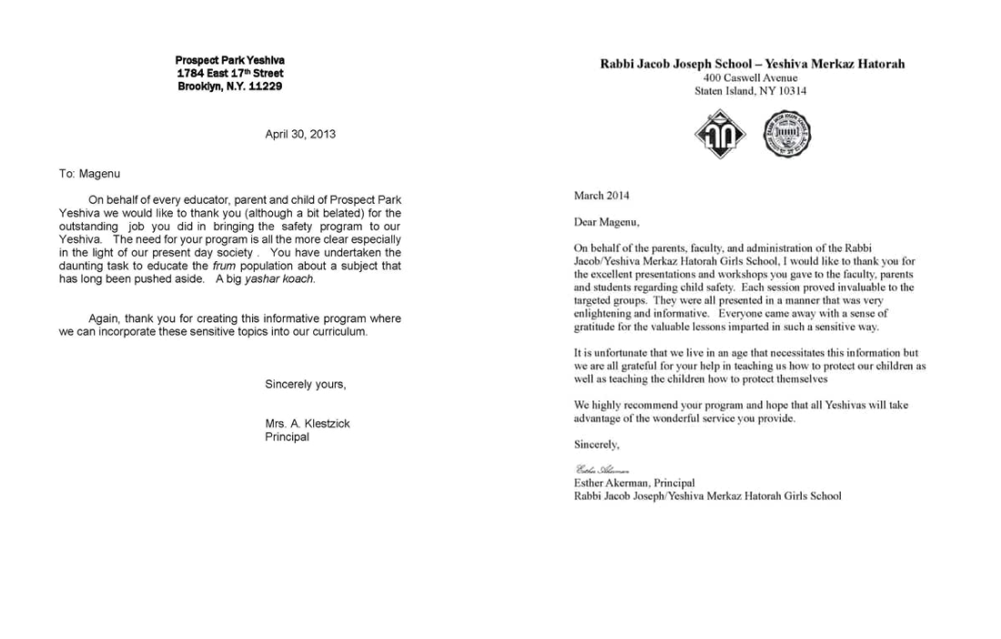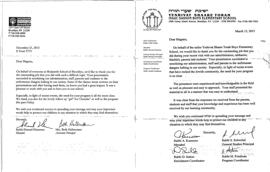 Each program adheres to the strictest hashkafic standards to give the younger generation the tools to recognize unsafe situations and know when to report to an adult.